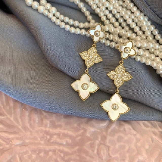 Fashion Four-leaf Clover Zircon Long Earrings Jewelry